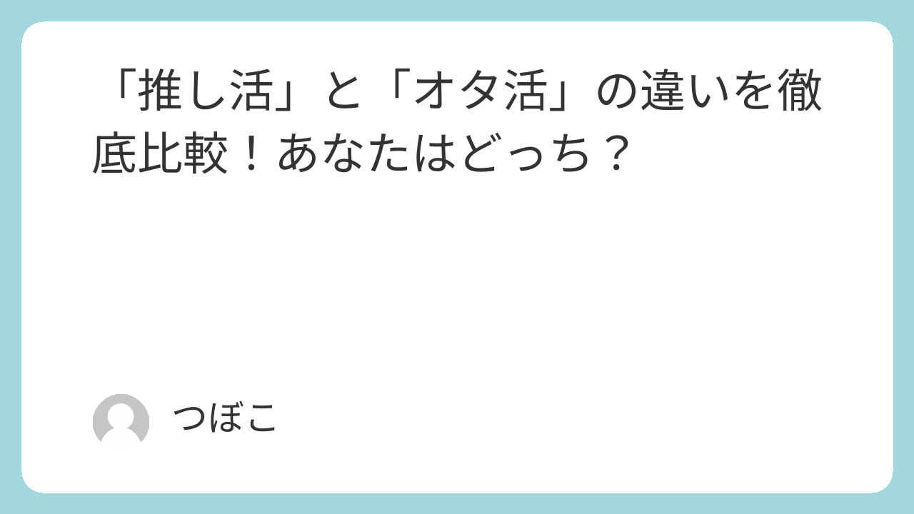 推し活やオタ活に興味がある方は、ぜひ最後までお読みください。